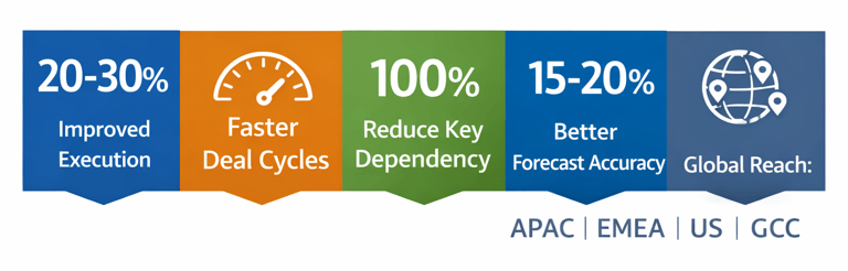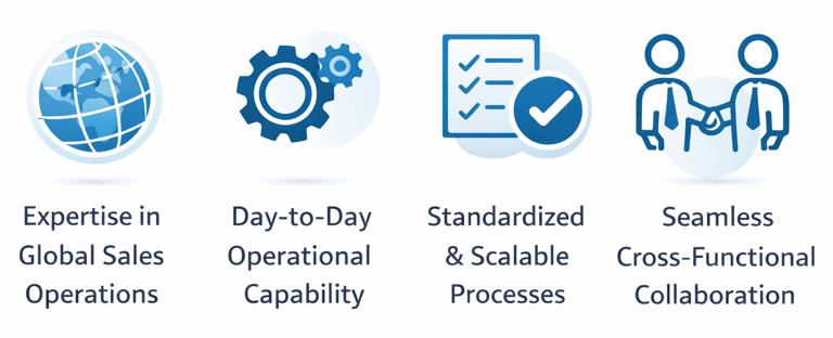 We help organizations design, stabilize, and run sales operations as a scalable commercial capability. By combining advisory with outsourced execution, we remove dependency on individual resources and ensure reliable, consistent sales execution across markets.