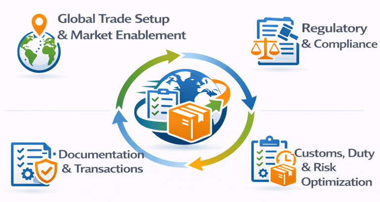 We help businesses operate international trade with confidence and control by providing end-to-end trade advisory across compliance, operations, and commercial enablement.